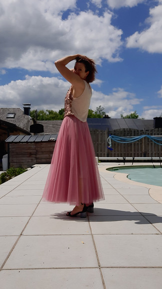 Ce test s'est fait dans notre vieux rose, dans sa version longue cette fois. Cette jupe est gourmande en tissu, mais heureusement, le tulle est plutôt bon marché.